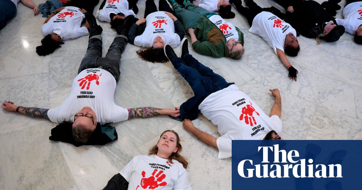#theguardian.com. #Feb.26.2025 × Fired USAid workers and HIV activists hold ‘die-in’ to protest Trump and Musk. Dozens of demonstrators lie down in government office building to warn against dismantling foreign aid agency