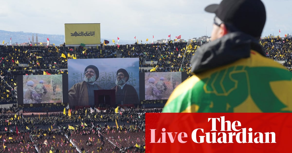 #theguardian.com. #Feb.23.2025 Middle East crisis live: IDF carries out airstrikes in southern Lebanon ahead of funeral of Hezbollah leader Nasrallah. Hezbollah’s former leader was killed in Israeli strike last September; Israel suspends release of 600 Palestinians